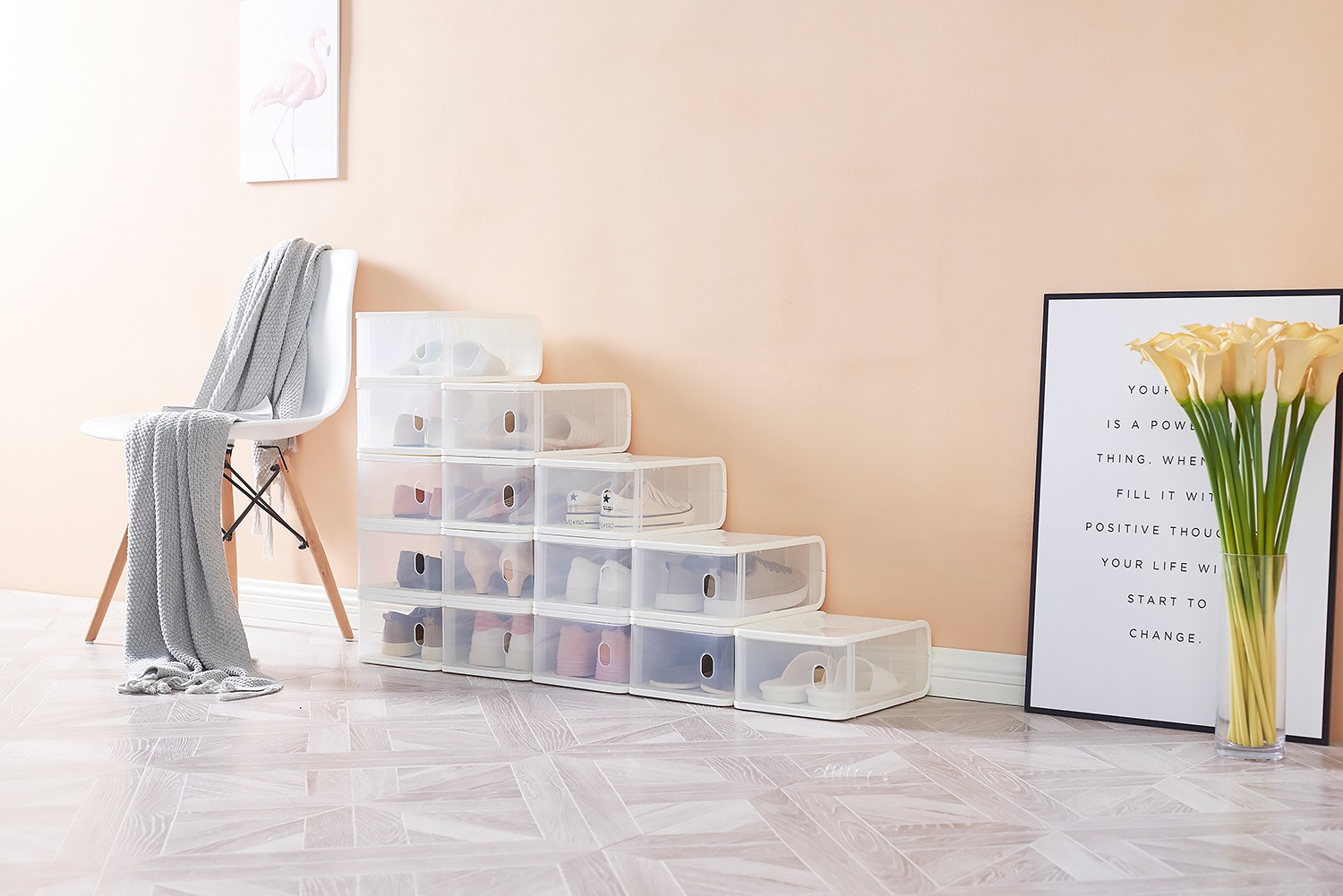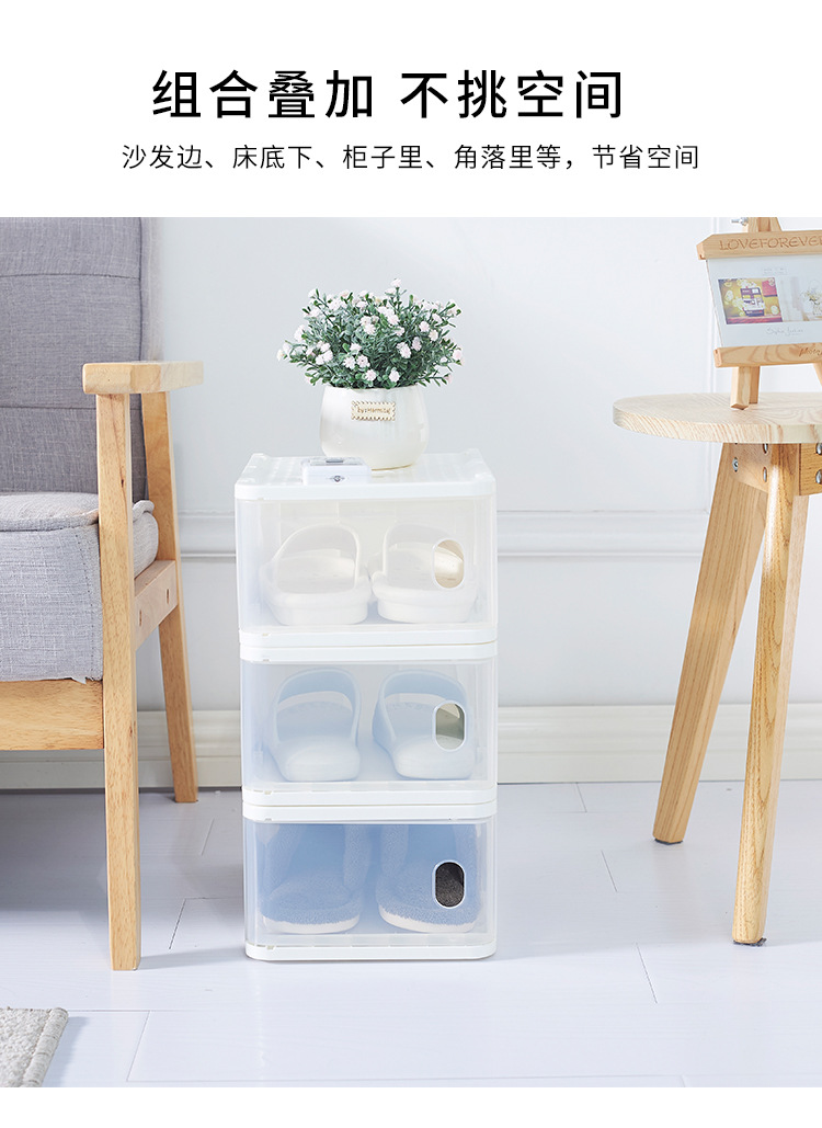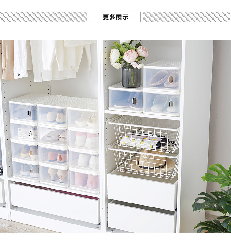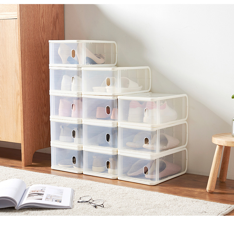 厂家现货批发创意日式塑料鞋盒可叠加防尘加厚鞋盒出口透明收纳盒